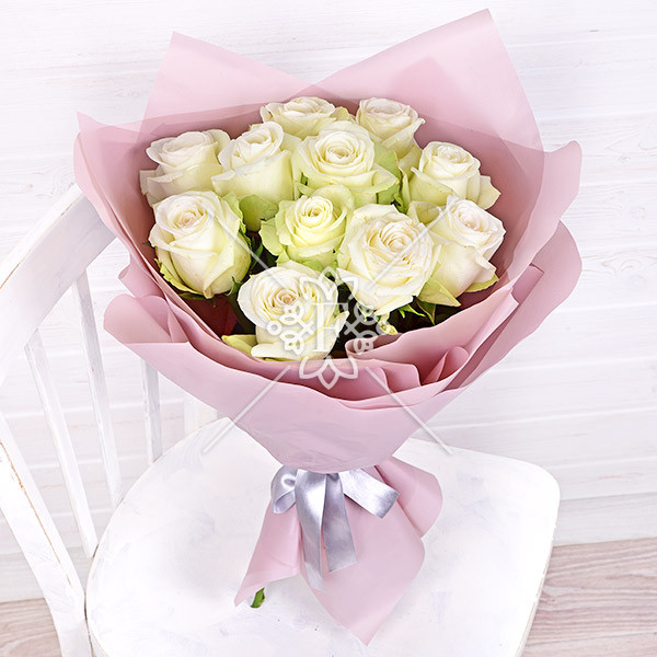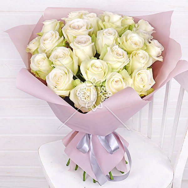 Букет из ванильно-белых роз выглядит шикарно и благородно. Волшебный аромат, гармония цвета и стиля – здесь прекрасно все! Цветочная композиция будто сияет, поражая своей свежестью и элегантностью.  Такой подарок не останется без внимания и обязательно порадует получателя.